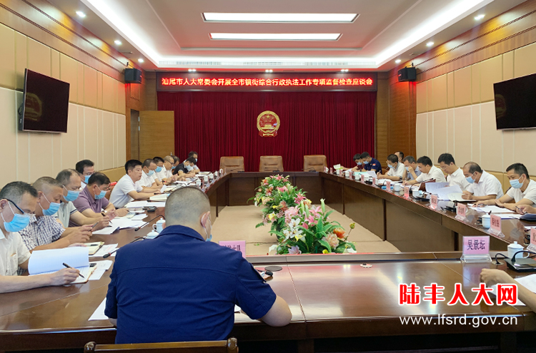 监督检查组一行深入东海综合行政执法队了解人员配备、机构设置、执法办案等情况;随后,在市人大会议室召开汇报座谈会,听取市政府关于全市镇街综合行政执法工作情况汇报,以及市编办、市司法局等10个放权单位相关工作情况汇报。