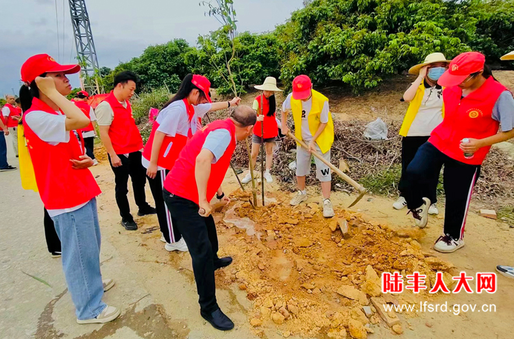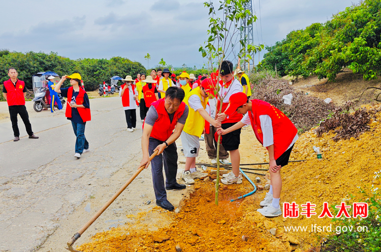 活动中,南塘镇各级人大代表、党员干部和南塘镇华山志愿服务中心志愿者积极响应绿美陆丰生态建设号召,挥锹握锄、放苗、扶正、培土、压实、提水浇灌,分工有序的在龙岭村村主干道种植树木。通过大家的辛勤劳动,此次活动共种植了沉香树200株,以实际行动为绿美陆丰生态建设再添新绿象。