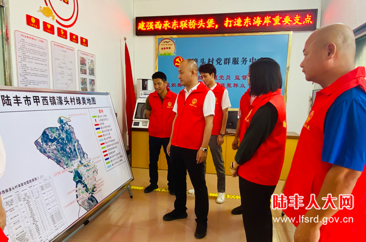 代表们一行来到甲西镇濠头村委,实地察看该村的绿美建设工作情况,认真研究绿美地图,听取相关负责同志的工作介绍,详细了解濠头村的绿美生态建设工作以及植树兴林的后期管护情况。