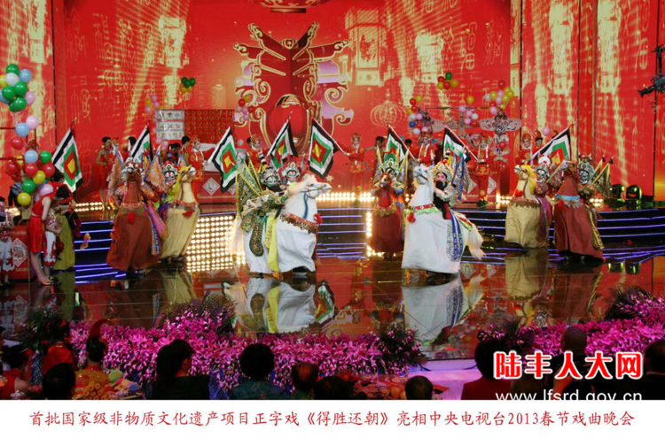 应中央电视台邀请,正字戏以中国戏曲绝活“跑布马”《得胜还朝》精彩亮相2013年央视戏曲春晚。