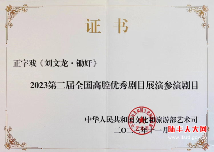 2023年11月,正字戏优秀精品剧《刘文龙·锄奸》一折,继正字戏优秀传统剧目《织锦记·百日缘》参加首届全国高腔优秀剧目展演之后,入选第二届全国高腔优秀剧目展演,于11月8日在抚州市临川大剧院展演。