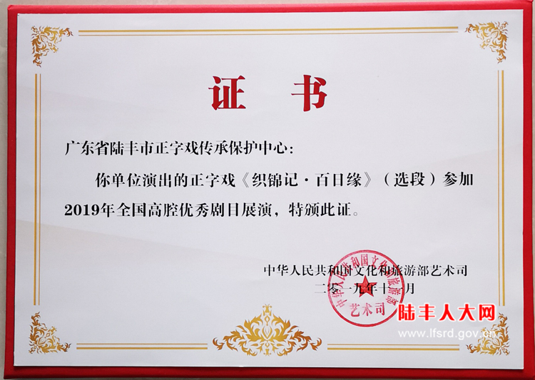 2010年7月陆丰市正字戏剧团应邀参加香港首届中国戏曲节展演,同年10月参加由中国艺术研究院主办的bmw中国文化之旅展演,均受到行家和观众的赞扬。2010年10月由广东省委宣传部、省文化厅、中山大学联合主办的广东省特色剧种展演暨学术研讨会上,正字戏《刺梁骥》《古城会》参加展演均获优秀剧目奖。