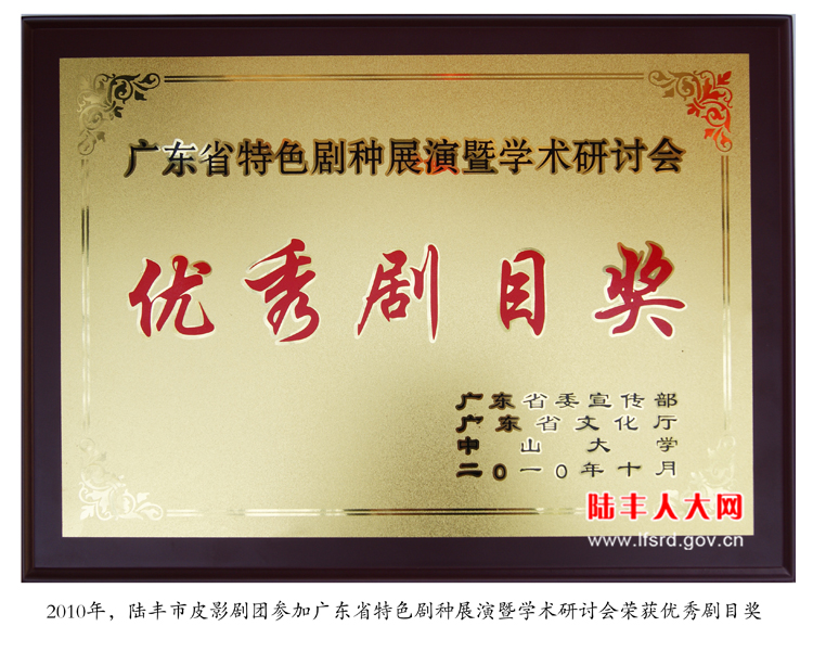 2010年,陆丰市皮影剧团参加广东省特色剧种展演暨学术研讨会荣获优秀剧目奖;