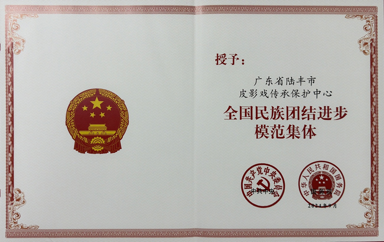 授予广东省陆丰市皮影戏传承保护中心“全国民族团结进步模范集体”