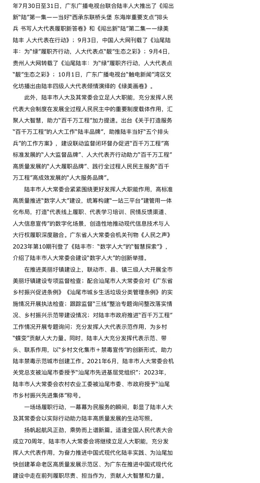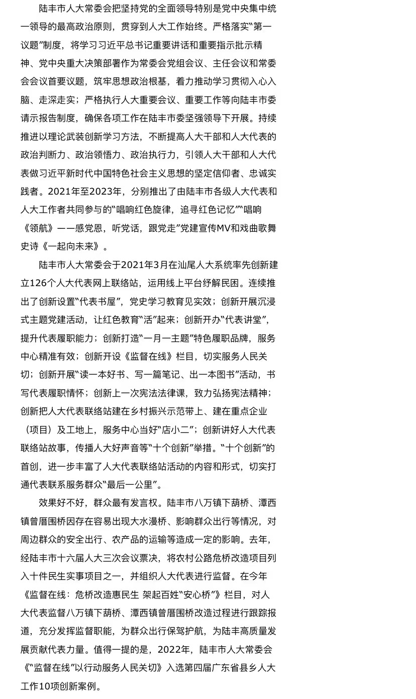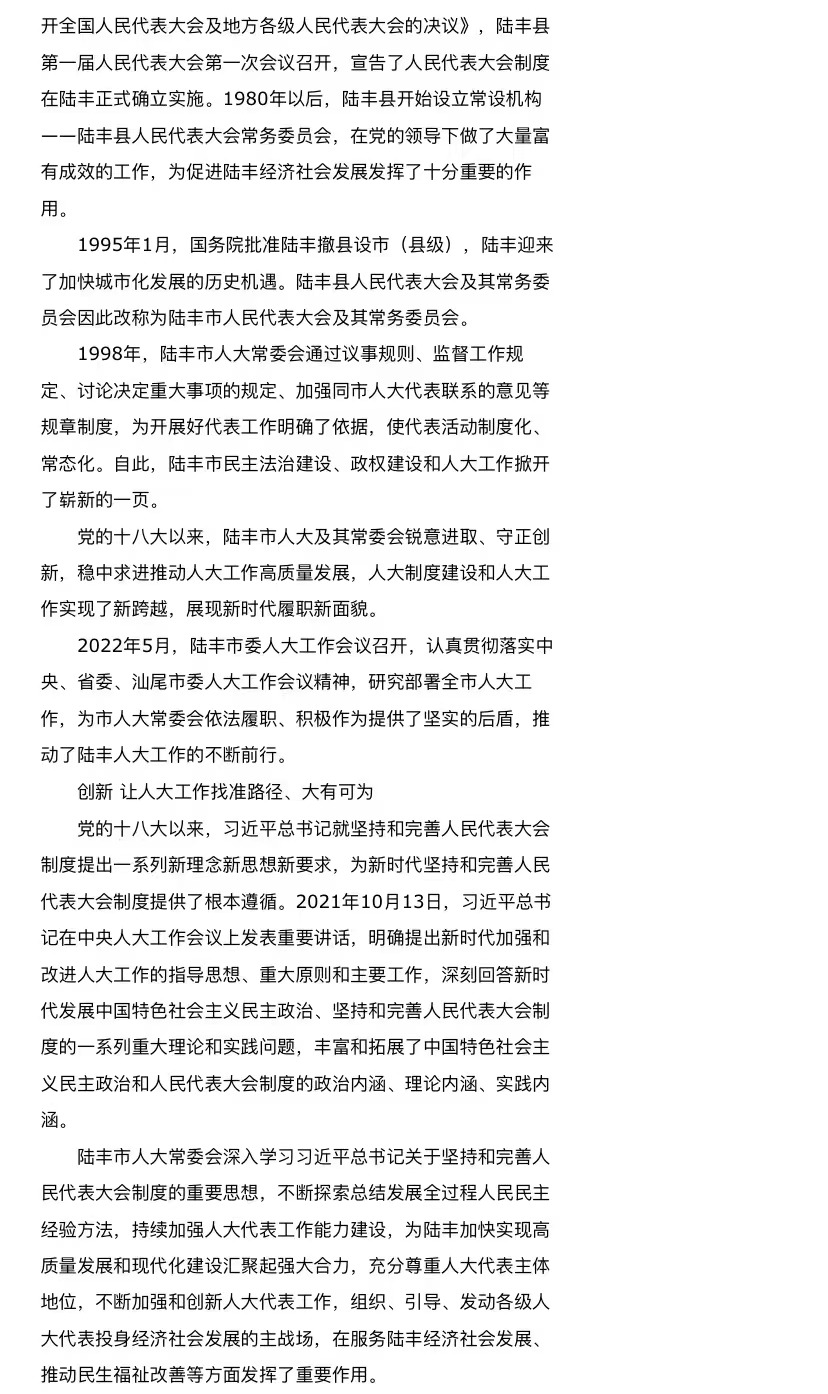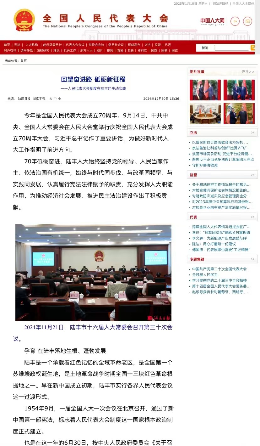 全国人大官方网站刊载《回望奋进路 砥砺新征程——人民代表大会制度在陆丰的生动实践》文章,现全文推送如下: