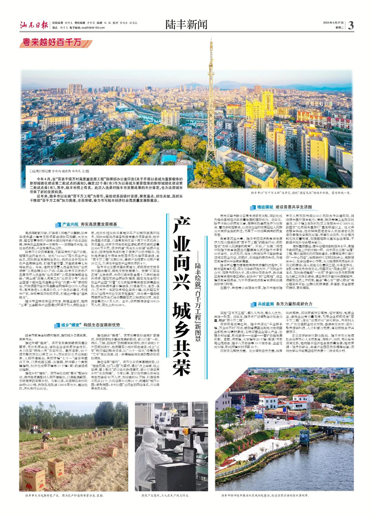 近年来,陆丰市以实施“百千万工程”为牵引,高效统筹县镇村资源,聚焦重点、抓住关键,真抓实干推动“百千万工程”加力提速、全面突破,奋力书写陆丰经济社会高质量发展新篇章。