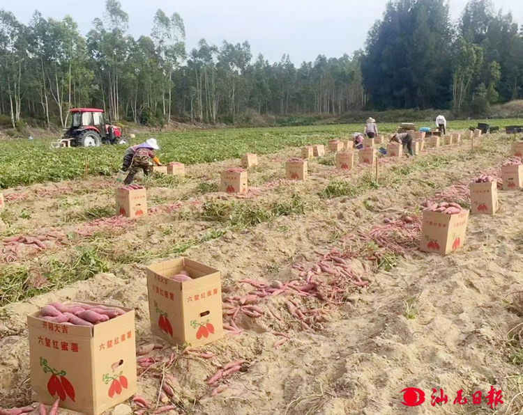 陆丰市大力发展特色产业。图为农户忙着将甘薯分类、装箱。