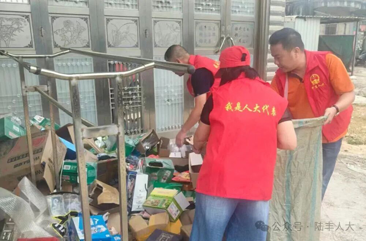 “硬劝没用,得顺着老人的心思来!”几次碰壁后,陆丰市人大代表蔡瑞锋主动琢磨对策:老人们舍不得扔,核心是“怕吃亏”,不如由代表当“收购员”,按市价收废品,既帮老人变现,又能清杂物。想法一定,代表们立刻行动。蔡瑞锋、陈武强等市代表提前兑换大量1元、5元零钱,镇代表陈振华、李伟权开着货车逐村上门;遇到行动不便的张阿婆,代表们撸起袖子帮着搬纸皮、清角落积水;碰到不理解的老人,就蹲在门口递上零钱,指着积水瓶罐耐心讲:“阿婆您看,这水里的小虫就是蚊子幼虫,清了这些,您在家就不怕被叮生病啦!”