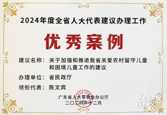 “调研过程中,我发现随着经济社会发展,农村留守儿童在家庭教育、心理健康、学业保障等方面面临诸多挑战,部分孩子因缺乏关爱和正确引导成为困境儿童。”广东省第十四届人民代表大会第二次会议召开期间,陈文宾郑重提交了《关于加强和推进我省关爱农村留守儿童和困境儿童工作的建议》。这份建议事由充分,问题分析切中要害,指出了一些地方存在底数不清、关爱措施流于形式、教育资源不足、心理健康服务缺失、专业力量薄弱等问题。他建议,做好统计规划,摸清底数,制定多部门参与的帮扶关爱计划;强化教育帮扶,加强薄弱学科教师队伍建设,提升农村学校教学质量,完善控辍保学机制。他还十分关注儿童心理健康,创新提出将心理辅导融入日常教学,加强儿童工作队伍建设,同时引导社会力量参与,培育专业社会组织,建立志愿者队伍,形成关爱合力。